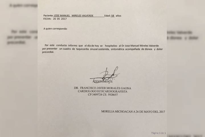 NOTICIAS 26/05/2017Hospitalizan a Mireles por taquicardia y niveles de azucar altosEl doctor José Manuel Mireles Valverde, ex líder de autodefensa y en otrora vocero del Consejo de Autodefensas de Michoacán, fue internado en un hospital privado de esta capital debido a que presentó taquicardia y niveles de azúcar altos, así lo confirmó su familia, la cual agregó que el estado de salud del galeno es reportado como estable.
