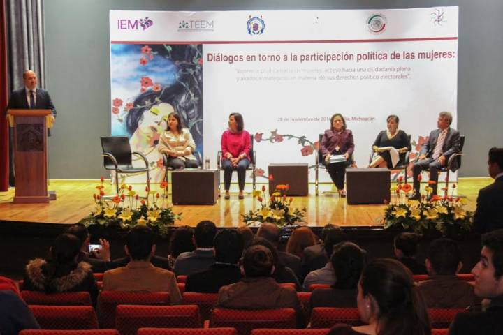 NOTICIAS 28/11/2016IEM organiza diálogo en torno a la participación política de las mujeresEn el marco del Día Internacional de la Eliminación de la Violencia contra la Mujer, el Instituto Electoral de Michoacán (IEM), en coordinación con diversas instituciones, realizó el panel "Diálogos en torno a la participación política de las mujeres: Violencia política hacia las mujeres, acceso hacia una ciudadanía plena y aliados estratégicos en materia de sus derechos político electorales".
