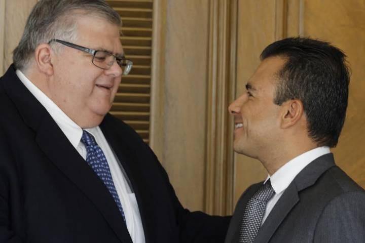Con la finalidad de fortalecer la coordinación institucional y coadyuvar desde sus respectivos campos de competencia en la solución de los problemas que aquejan a los municipios michoacanos y a la administración estatal, este dÃa se reunió el diputado federal Fidel Calderón Torreblanca con el Secretario de Finanzas y Administración del gobierno del estado Carlos Maldonado Mendoza.