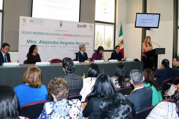 Al impartir su conferencia la Maestra Alejandra Negrete Morayta, Comisionada Nacional para Prevenir y Erradicar la Violencia contra las Mujeres, disertó sobre el tema con su ponencia "Medidas PolÃticas para Prevenir la Violencia contra las Mujeres" en un evento organizado por el Tribunal Electoral del Estado de Michoacán, en colaboración con el Instituto Electoral de Michoacán, la Comisión Estatal de Derechos Humanos y la Facultad de Der... Ver más...