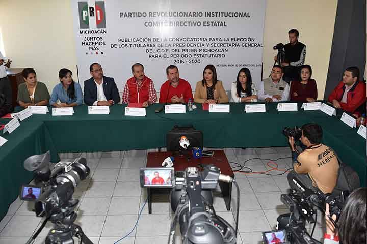 NOTICIAS 12/03/2016Expide PRI convocatoria para renovación de su dirigencia estatalLuego de que el dÃa de ayer se definiera el método para la renovación de la dirigencia tricolor, el Comité Ejecutivo Nacional, expidió la Convocatoria para la elección de los titulares de la Presidencia y SecretarÃa General del Comité Directivo Estatal del PRI en Michoacán para el periodo estatutario 2016-2020.