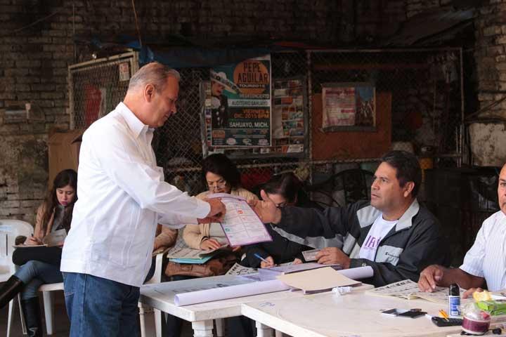 NOTICIAS 06/12/2015Sin miras a que se judialice la jornada electoral: PANSin miras de que se judicialice la elección, además de un ambiente de paz y tranquilidad es lo que vislumbra el dirigente estatal del Partido Acción Nacional (PAN), José Manuel Hinojosa Pérez, durante esta jornada comicial extraordinaria, esto luego de acompañar al abanderado panista a la alcaldía de Sahuayo, a emitir su sufragio.