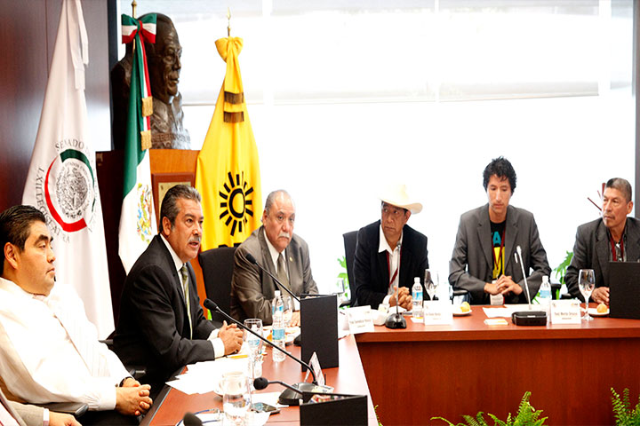 En el marco de la reunión ordinaria del Grupo Parlamentario del PRD en el Senado de la República, el legislador por Michoacán, Raúl Morón Orozco, escuchó las inquietudes planteadas por los integrantes del Concejo Mayor sobre las necesidades de este municipio indígena de la Meseta Purépecha, quienes además expusieron los conceptos legales que limitan el ejercicio de gobierno de los órganos de gobierno erigidos por usos y costumbres.