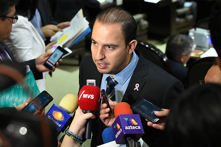 NOTICIAS 18/10/2015Acción Nacional votará en contra de la parte tóxica de la Ley de IngresosEn la víspera de que se apruebe la Ley de Ingresos de la Federación 2016, el PRI-gobierno tiene que responder al clamor de los ciudadanos por el cambio del rumbo económico, pues es inaceptable mantener intacta la política fiscal que tanto ha perjudicado a los sectores productivos del país, afirmó el Coordinador del Grupo Parlamentario del Partido Acción Nacional, Marko Cortés Mendoza.
