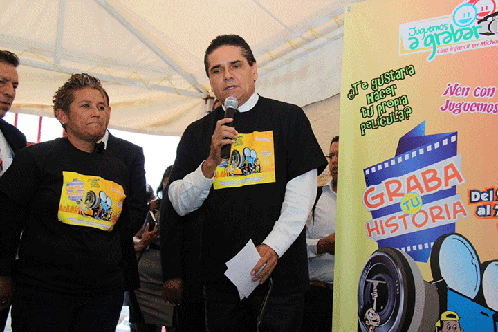 NOTICIAS 27/07/2015Silvano con "Juguemos a grabar"El gobernador electo de Michoacán, Silvano Aureoles Conejo, inauguró el programa de cine infantil Graba Tu Historia, de Juguemos a Grabar, que se enfocará en la vida de pequeños de escasos recursos; conmovido al escuchar las historias de los niños y jóvenes que se dieron cita en el evento, recordó su infancia y le des dijo, "no dejen de soñar, sí es posible".