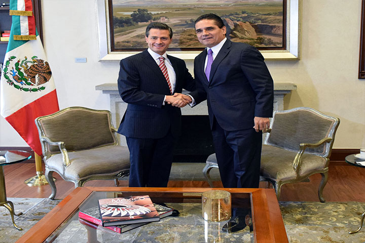 NOTICIAS 07/07/2015Peña Nieto y Aureoles acuerdan mantener una estrecha coordinaciónEl presidente de la República, Enrique Peña Nieto, y el gobernador electo de Michoacán, Silvano Aureoles Conejo, sostuvieron un encuentro este medio día como parte del acercamiento que ha tenido el titular del Ejecutivo federal con los candidatos que resultaron triunfadores en la jornada electoral del pasado 7 de junio.
