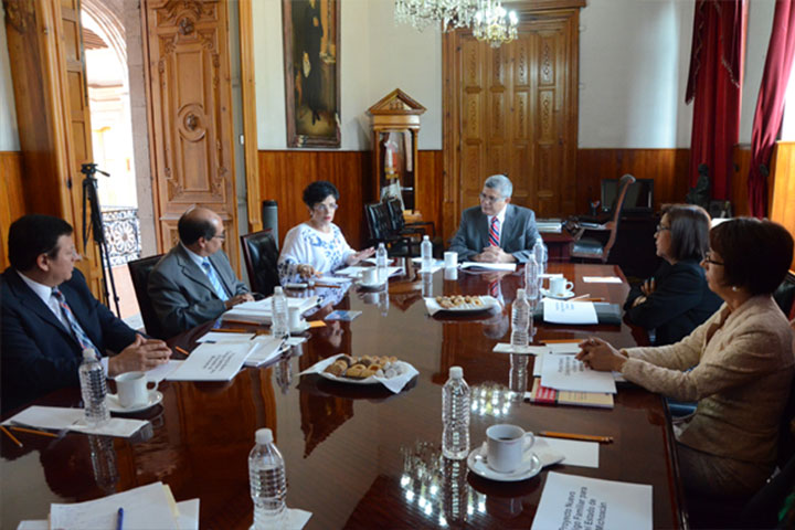 Con el objetivo de que la normatividad en materia familiar en Michoacán sea actual y acorde con los requerimientos de la sociedad, este día el magistrado presidente Juan Antonio Magaña de la Mora, las magistradas del Supremo Tribunal de Justicia María Cristina Torres Pacheco, María Alejandra Pérez González y los magistrados Jorge Reséndiz García y Jorge Pérez Zavala, presentaron a la diputada Talía Vázquez Alatorre, presidenta de la... Ver más...