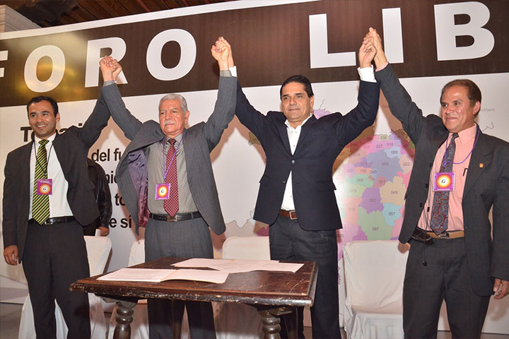 NOTICIAS 27/05/2015El candidato del Partido Humanista se suma a SilvanoSe desarrolló en la capital michoacana el Foro Liberal, "Sociedad del Futuro, Nuevo Comienzo Todo para Todos", convocado por el Dr. Gerardo Dueñas Bedolla, candidato del Partido Humanista al gobierno del estado. Este evento tuvo como invitado al candidato de los partidos de la Revolución Democrática, del Trabajo y Nueva Alianza, Silvano Aureoles Conejo.