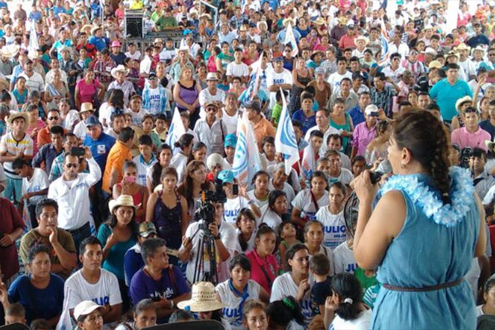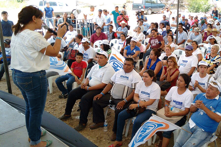 Con el compromiso de dar un verdadero impulso al campo michoacano a fin de incrementar la calidad de la producción de los frutos que se dan en la región, la noche de este sábado, la candidata panista Luisa María Calderón Hinojosa, fue recibida por cientos de habitantes de la zona en la explanada municipal de Coahuayana.