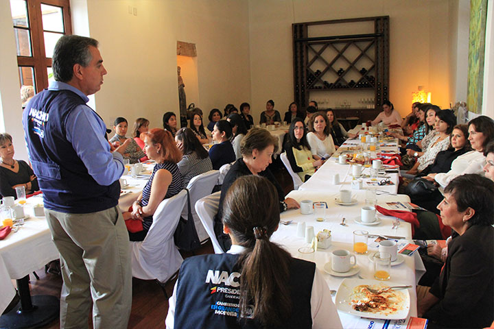 NOTICIAS 22/05/2015Respaldan mujeres empresarias a Nacho Alvarado Con el fin de entablar un diálogo directo entre mujeres empresarias, Nacho Alvarado Laris, candidato del PAN a presidente municipal de Morelia, se reunió con un grupo de representantes del sector económico moreliano quienes escucharon las propuestas de "Morelia Plan 20" tres años de gobierno, 20 años de crecimiento.