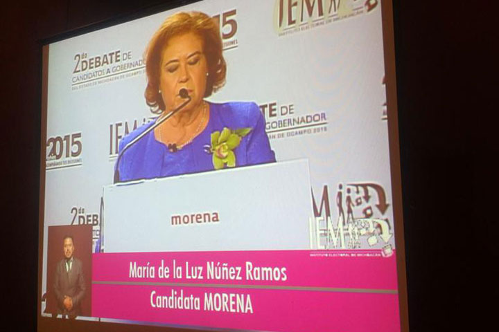 NOTICIAS 20/05/2015MarÃa de la Luz convoca a la rebeldÃa a través del voto"Ejercer el voto es el acto más grande de rebeldÃa", exclamó MarÃa de la Luz Núñez Ramos, candidata del Partido MORENA al gobierno del estado al participar en el segundo debate de contendientes organizado por el Instituto Electoral de Michoacán (IEM).