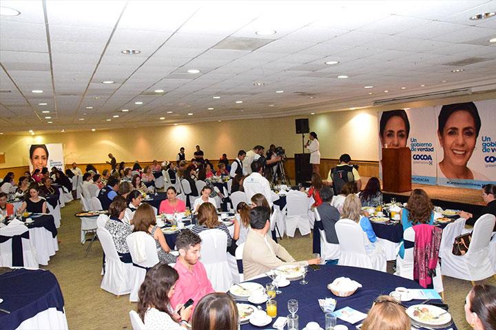 Mujeres empresarias de Michoacán se reunieron con la candidata del Partido Acción Nacional (PAN), Luisa María Calderón Hinojosa para hacer un llamado, en caso de que se vea beneficiada en las urnas, a que asuma un liderazgo de verdad que sepa resaltar las virtudes del estado.