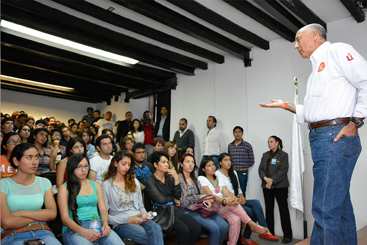 Manuel Antúnez Oviedo, Candidato de Movimiento Ciudadano al Gobierno del Estado, visitó a los alumnos de la Universidad de Morelia (UDEM), a quienes exhortó a participar más en la vida pública y política de su estado dada la urgencia que plantea la actualidad, donde impera la inseguridad y la impunidad.