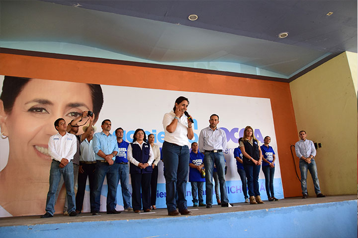 Lucila Martínez Manríquez, candidata a diputada del PRD por el distrito 17 de Morelia, durante un recorrido por las comunidades de Zimpanio Sur, Las Cruces y El Escobal comentó a los pobladores que el deber de los legisladores es velar por quienes se representa.