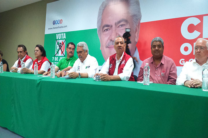 El candidato a la alcaldía de Morelia por el PRI, Jaime Darío Oseguera Méndez, participó en una reunión con el Frente Único de Ganaderos Organizados de México, a la que también acudieron el candidato a la gubernatura de Michoacán, Chon Orihuela y César Camacho, presidente Nacional del PRI.