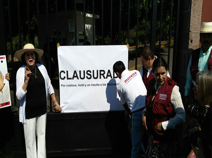 Acompañada de simpatizantes y equipo de campaña la candidata de Andrés Manuel López Obrador procedió a colocar un sello de clausura que se acompaña con la leyenda "Por costosa, inútil y un insulto a los mich... Ver más...