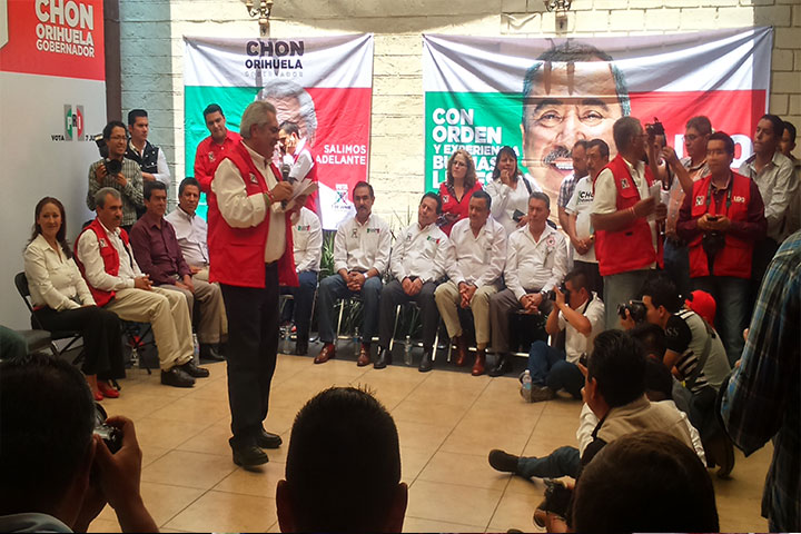 NOTICIAS 02/05/2015Sin incidentes, Chon Orihuela ha recorrido más de 50 municipiosA casi un mes de iniciadas las campañas, el candidato del PRI-PVEM, al gobierno del estado, Ascensión Orihuela Bárcenas, ha recorrido más de 50 municipios de la entidad y no se han presentado incidentes.