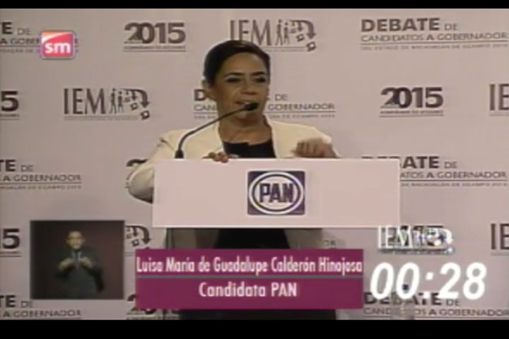 La candidata del Partido Acción Nacional (PAN) al gobierno del estado, Luisa María Calderón Hinojosa se declaró ganadora del primer debate realizado por el Instituto Electoral de Michoacán (IEM).