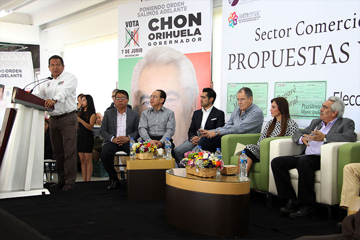 El candidato a la presidencia municipal de Morelia, por el PRI, Jaime Darío Oseguera, acudió a un encuentro con integrantes de la Cámara Nacional de Comercio, Servicios y Turismo de Morelia (Canaco-Servytur), en donde refrendó su apoyo a los que generan empleos en el municipio.