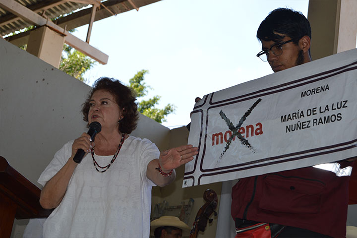 NOTICIAS 27/04/2015María de la Luz pide el voto para todos los candidatos de MorenaMaría de la Luz Núñez Ramos pidió a los michoacanos confiar su voto a todos los candidatos y planillas del Partido MORENA, ya que de esta manera se podrá consolidar el proyecto de rescate al estado y el país.