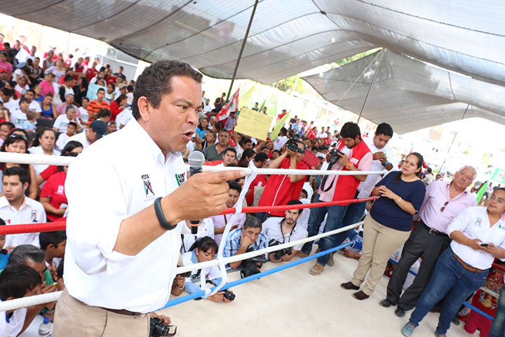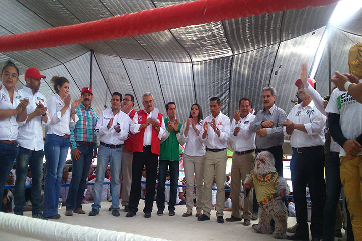 El Pirata Morgan, Marabunta Jr. y Súper PRI acompañaron al candidato a la gubernatura del estado por la alianza PRI ? PVEM, José Ascensión Orihuela Bárcenas, durante el mitin que realizó en la colonia Primo Tapia Poniente, en donde se comprometió a que durante su gobierno se apueste y se cumpla con el apoyo necesario para el deporte y la recuperación de espacios públicos.