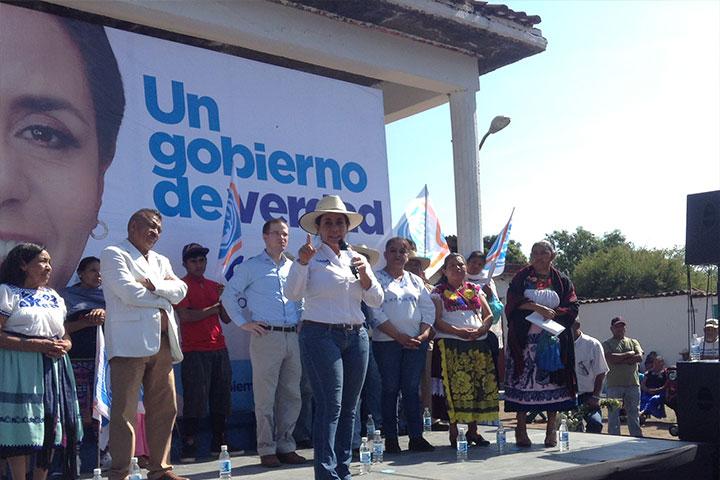 La abanderada panista por la gubernatura de Michoacán, Luisa MarÃa Calderón Hinojosa, fue recibida cálidamente por miles de habitantes del municipio de Purépero, quienes hicieron la petición a quien señalaron como la nueva gobernadora del estado, de impulsar el financiamiento de créditos para echar andar sus proyectos.