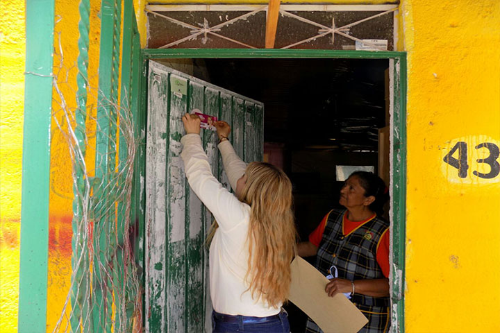 Casa por casa, Guadalupe Herrera Calderón busca el voto ciudadano en el Distrito Electoral Federal número VIII, con cabecera en Morelia.