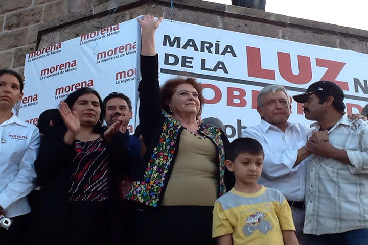 NOTICIAS 19/04/2015Michoacán no tolerará otra dictadura priísta: María de la Luz "Vamos a ganar este 7 de junio" , instó María de la Luz Núñez Ramos, cobijada por los aplausos de los morelianos, por la sombra del Obelisco al General Lázaro Cárdenas de Río y la presencia del líder de MORENA, Andrés Manuel López Obrador.