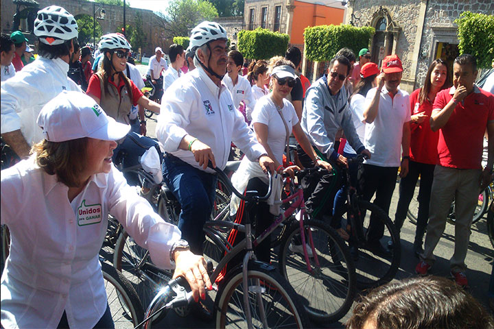 En Morelia, Chon Orihuela realizó el tradicional recorrido dominical en Bicicleta acompañado de la estructura de su partido, militantes y simpatizantes priistas.