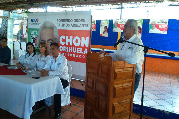 NOTICIAS 15/04/2015Gobiernos perredistas destrozaron al estado, afirma Chon Por atender a grupos fácticos y a sus grupos clientelares, los gobiernos perredistas dejaron en crisis al estado, asà lo aseguró el candidato a la gubernatura del Partido Revolucionario Institucional (PRI) y del Partido Verde Ecologista de México (PVEM), José Ascensión Orihuela Bárcenas, en el marco de su gira por Purándiro.