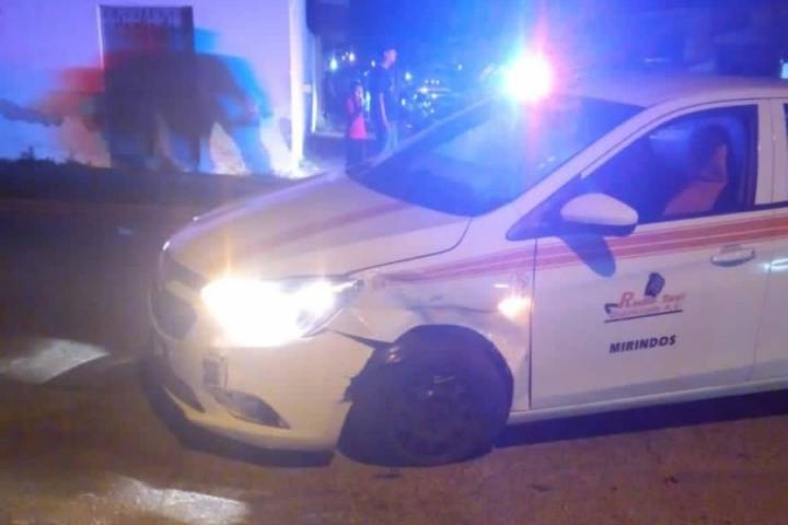 El percance vial tuvo lugar en el cruce las calles Sinaloa y Moctezuma en la colonia Ramón Farías, de esta ciudad de Uruapan, donde colisionaron una patrulla y un taxi de los conocidos como "Mirindos", con matrícula A-220-LBW.