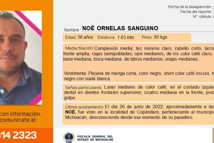La Fiscalía General del Estado de Michoacán (FGE) realiza actos de investigación por el homicidio del síndico municipal de Jiménez, Noé Ornelas Sandino, reportado como desaparecido anoche y localizado sin vida la mañana de este lunes, a un costado de la carretera, La Soledad-La Estancia, municipio de Villa Jiménez.