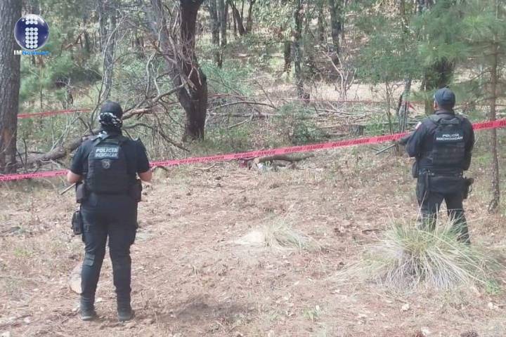 El macabro hallazgo fue reportado la tarde de este lunes en el interior del denominado "Rancho Nuevo", hasta donde se movilizaron los elementos de la Policía Michoacán y Policía Municipal, mismos que resguardaron el área.