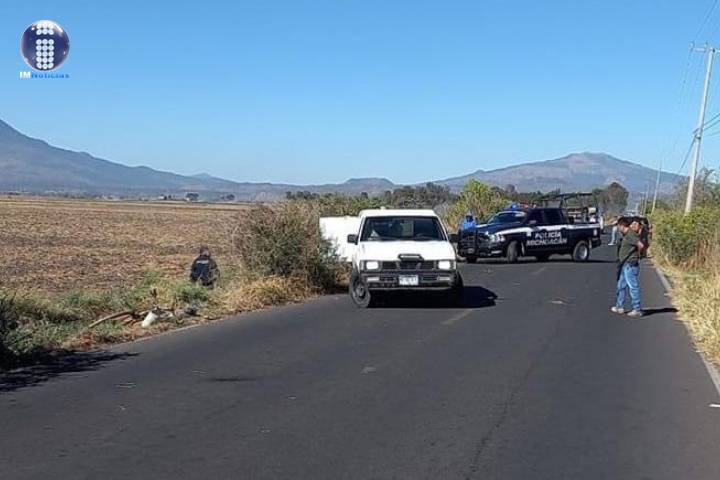 El fatal accidente ocurrió sobre la carretera Tangancícuaro-Francisco J. Mujica a la altura del Fraccionamiento Camelinas, zona que fue resguardada por los elementos de la Policía Michoacán y Tránsito Estatal.
