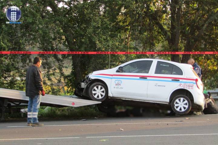 Un comerciante que se dirigía a realizar sus actividades cotidianas, perdió la vida de forma inmediata debido a las múltiples lesiones que sufrió al quedar atrapado debajo de un taxi que lo arrollo y arrastró varios metros. El conductor responsable se dio a la fuga dejando abandonada su unidad.
