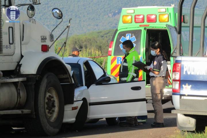 La mañana de este viernes, se registró un encontronazo de frente entre un automóvil particular y un camión usado para la construcción, el cual dejó como saldo una mujer sin vida, un hombre lesionado, así como cuantiosos daños materiales.