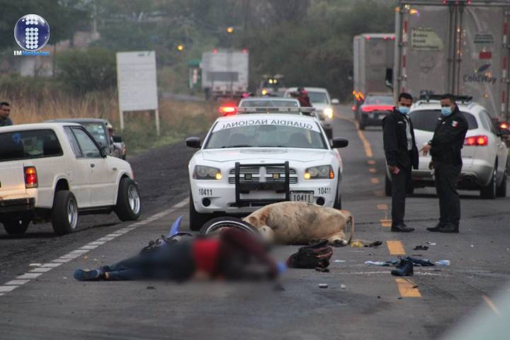 Dos trabajadores del Parque Industrial de Zamora, perdieron la vida debido a las múltiples lesiones que sufrieron al impactar su motocicleta contra un semoviente, además una mujer que intentó auxiliarlos quedo herida al ser arrollada por un automóvil, el cual fue abandonado metros más adelante.