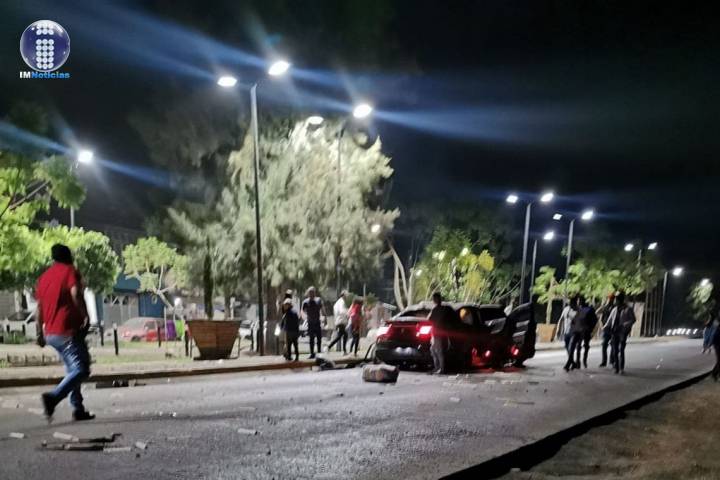 Se apreció que la unidad salió de la carpeta asfáltica y terminó siniestrada en un desnivel. El automotor es de la marca Chevrolet Chevy, color naranja, con matrícula de Nuevo León.
