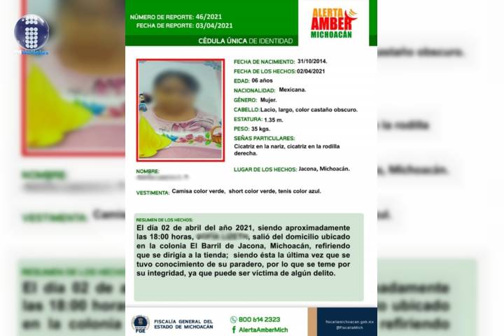 Sobre el caso la Fiscalía General del Estado de Michoacán (FGE) informó que "investiga el hallazgo del cuerpo sin vida de una menor de 6 años de edad, ... Ver más...