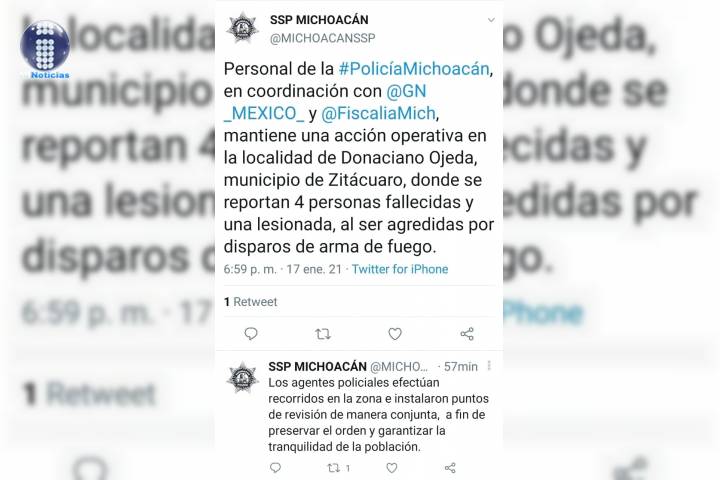 NOTICIAS 17/01/2021Se registra multihomicidio en el municipio de Zitácuaro