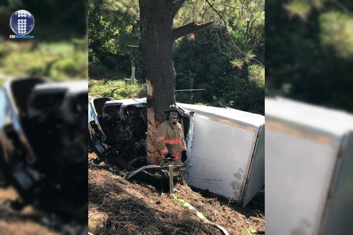El conductor de una camioneta pereció prensado al interior de la cabina de una camioneta tipo caja que conducía, luego de que al parecer se quedó dormido al volante, se salió del camino y terminó impactándose contra un pino, cerca de esta población.