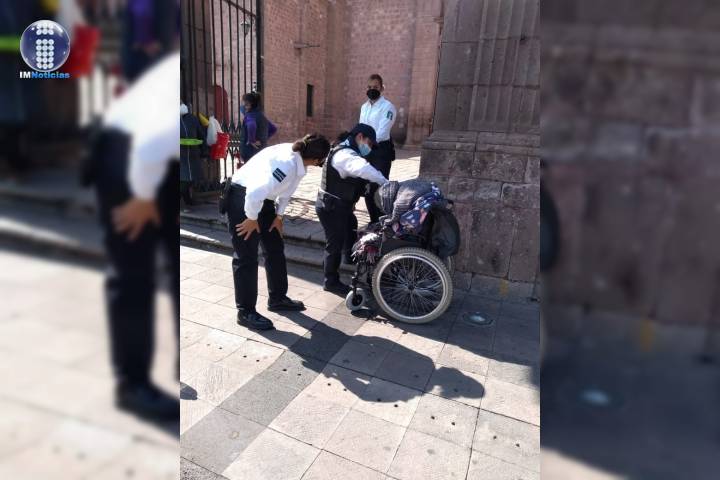 Un adulto mayor en silla de ruedas falleció en la vÃa pública del Centro Histórico de Morelia, a un costado de la Catedral. De acuerdo con contactos policiales y de rescate, el deceso del individuo se debió a causas naturales.