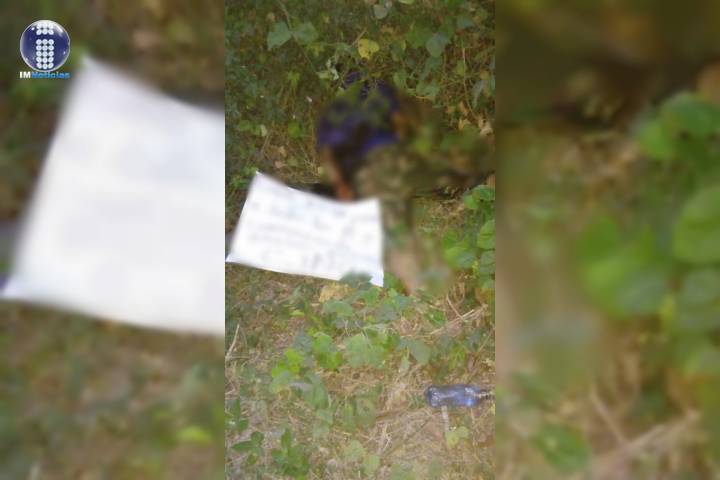 Un hombre fue asesinado y su cuerpo fue localizado con múltiples orificios producidos por proyectil de arma de fuego y junto a él una cartulina con un narcomensaje, en el municipio costero de Lázaro Cárdenas.