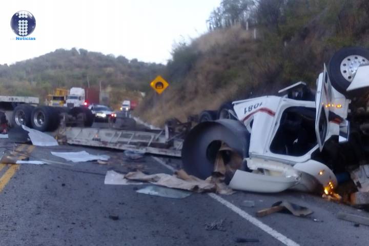 Un herido deja aparatosa volcadura de un tráiler en la pista "Siglo XXI"
