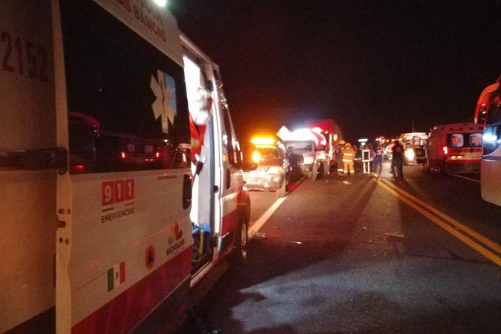 En los primeros minutos de este lunes, se registró un trágico choque entre dos camionetas en la carretera Peribán-Los Reyes, dejando como saldo tres muertos, entre ellos un niño, y dos lesionados más, los cuales se debaten entre la vida y la muerte en diferentes nosocomios, informaron las autoridades policiales. Alrededor de las 01:00 horas, sobre la mencionada vialidad se desplazaba una camioneta marca Chevrolet, tipo S10, color azul, ...