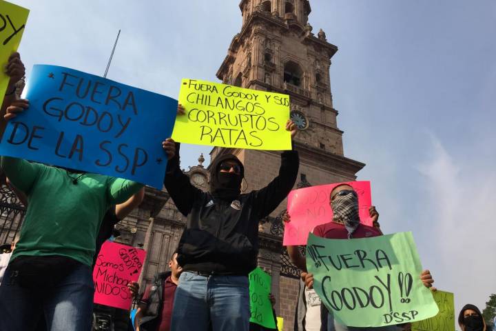 NOTICIAS 29/04/2019"Fuera Godoy, fuera chilangos de la SSP", gritan policías estatales en protestaCon el grito de: "¡Fuera Godoy, fuera chilangos!", marcharon este lunes cientos de elementos de la Policía Michoacán en la ciudad de Morelia y en las diferentes regiones de la entidad. Los uniformados exigen pago de seguros de vida para las familias de los oficiales que han caído en cumplimiento de su deber, uniformes, equipo, armamento y salarios dignos.