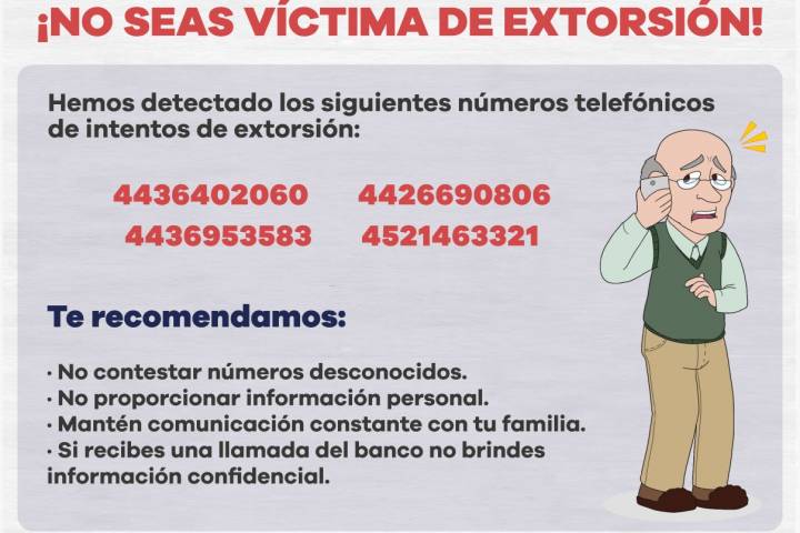 Con la finalidad de salvaguardar a la población, es importante que ante el intento de extorsión telefónica se realice una denuncia al número de emergencias 911, para detectar el origen ... Ver más...