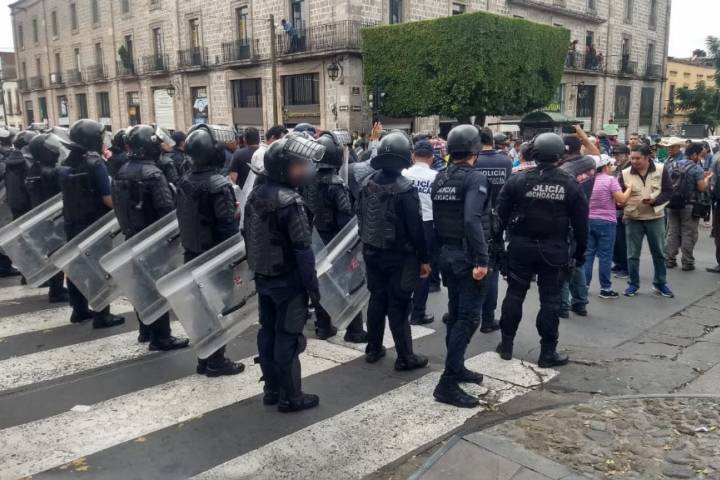 La SecretarÃa de Seguridad Pública (SSP), mantiene el despliegue policial en la zona Centro de Morelia, tras la manifestación de integrantes del Frente Nacional de Lucha por el Socialismo.