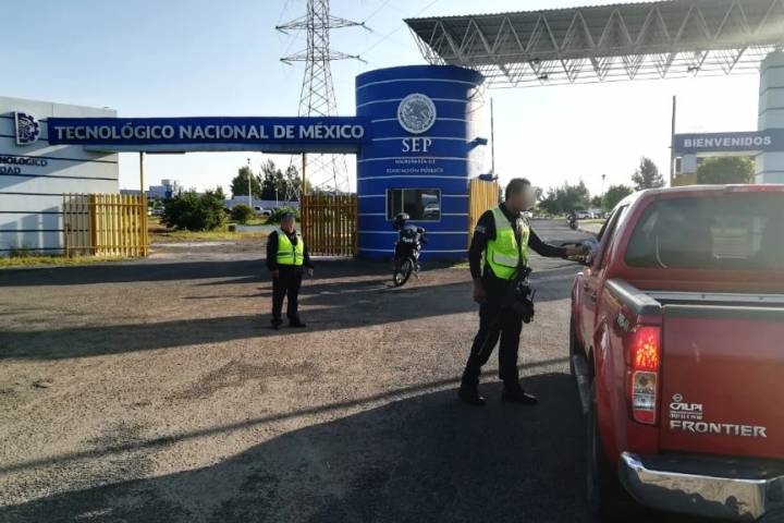 Desde temprana hora de este lunes, en las entradas a centros educativos de los diferentes niveles, agentes de Tránsito y Movilidad entregan material ilustrativo y dan información a los jóvenes.