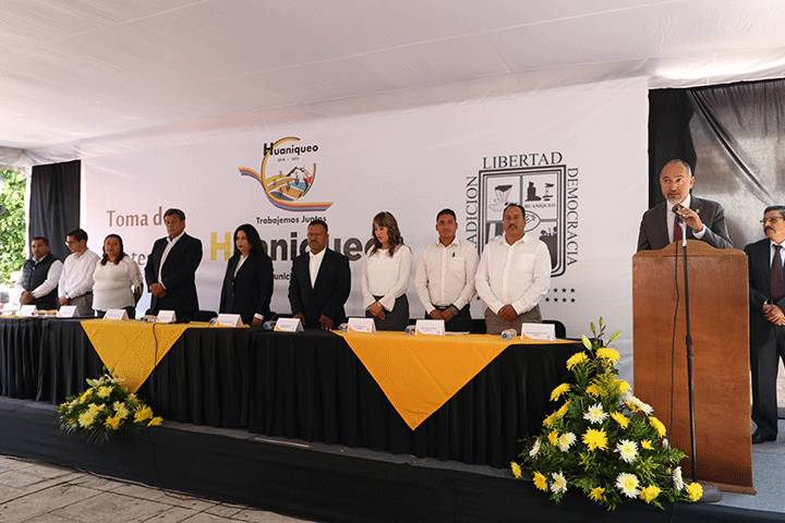 NOTICIAS 01/09/2018Con municipios, trabajo coordinado y de pleno respeto: SCOP Con la representación del gobernador de Michoacán, Silvano Aureoles Conejo, el titular de la Secretaría de Comunicaciones y Obras Públicas (SCOP), José Juan Domínguez López, asistió a la toma de protesta de la presidenta municipal entrante de Huaniqueo, Ma. Trinidad Vázquez Herrera, y de las y los integrantes del Cabildo que encabezan la administración local 2018 - 2021.
